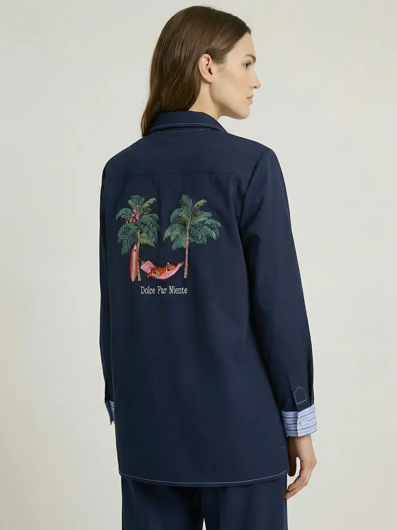 Mao Emb Linen Shirt